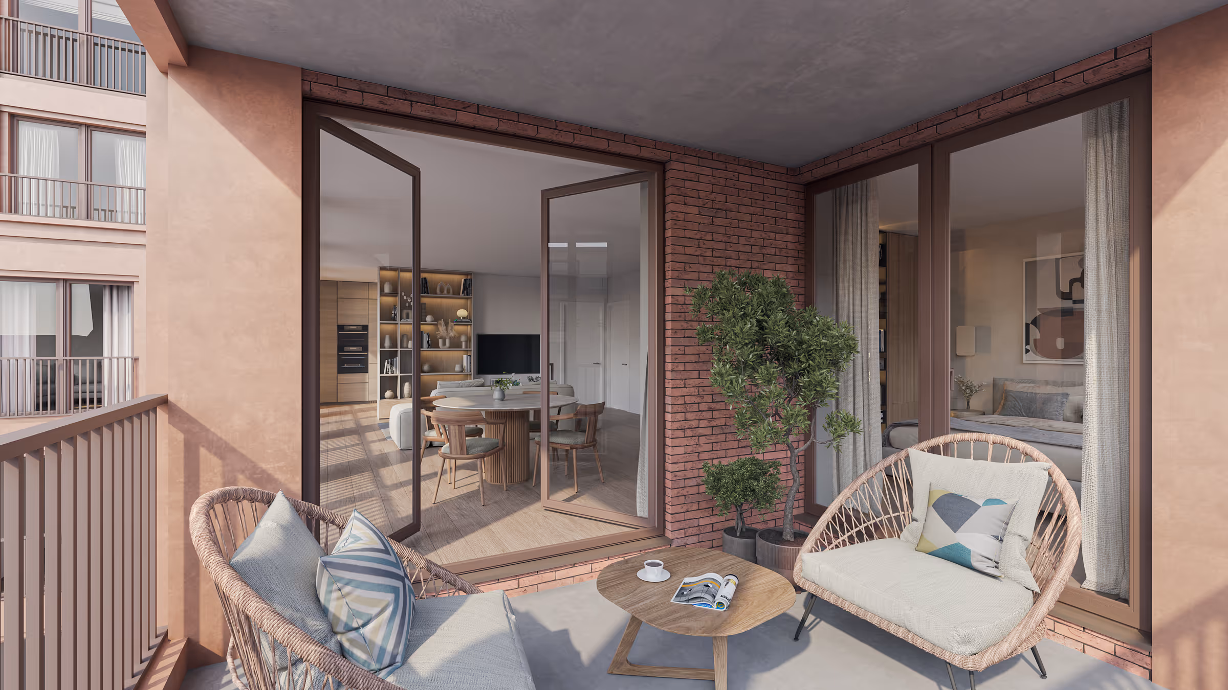 Het doordachte ontwerp, royale buitenruimtes met een gemeenschappelijke tuin en groene accenten creëren een oase van rust midden in de stad. De gelijkvloerse appartementen beschikken over een privétuintje, terwijl de verdiepingen royale terrassen bieden.